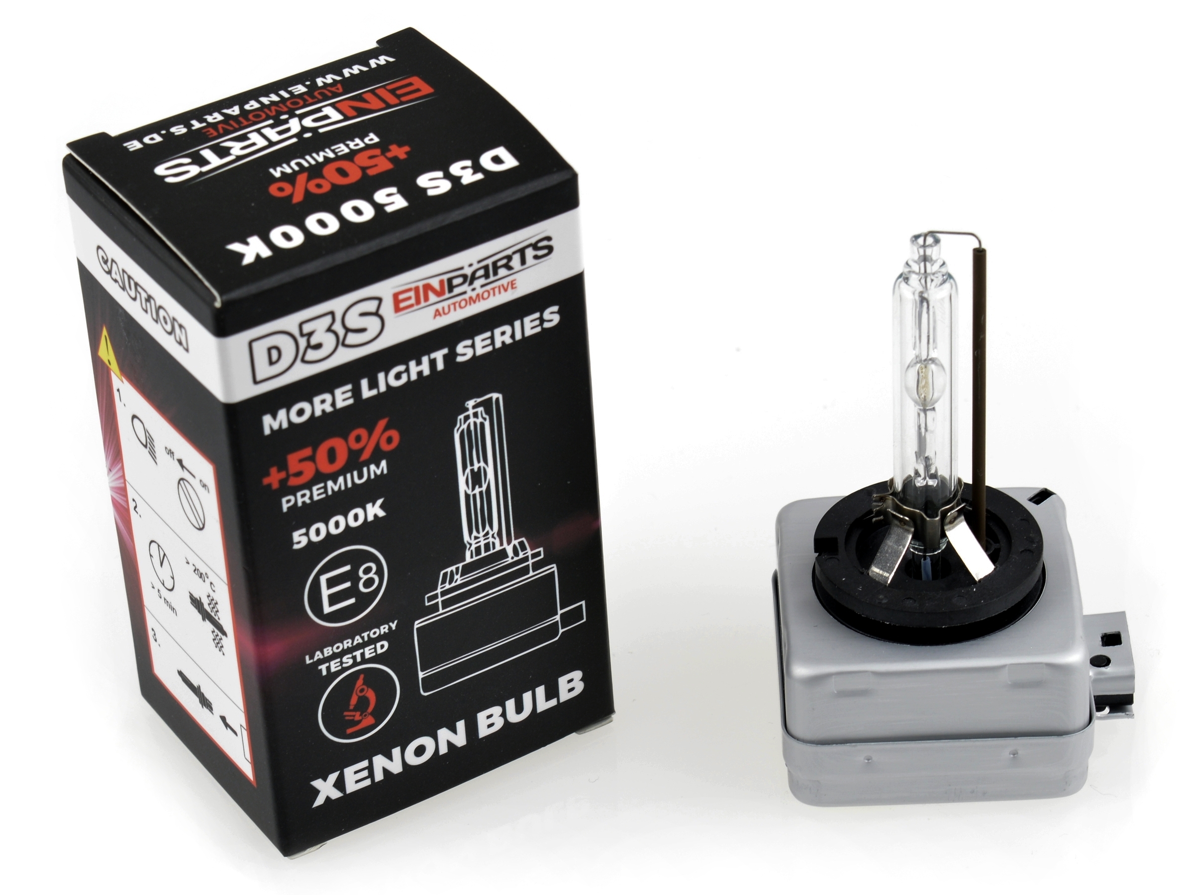 Díky použití nejkvalitnějších materiálů a nejnovějších výrobních technik se podařilo vyrobit vysoce trvanlivé xenonové výbojky. Výbojky mají homologaci E8, zvyšují svítivost o 50%, dosah světelného kužele a viditelnost za tmy. Určené do originál xenonových světlometů. Doporučujeme měnit výbojky v páru - každé světlo bude svítit stejnou barvou.