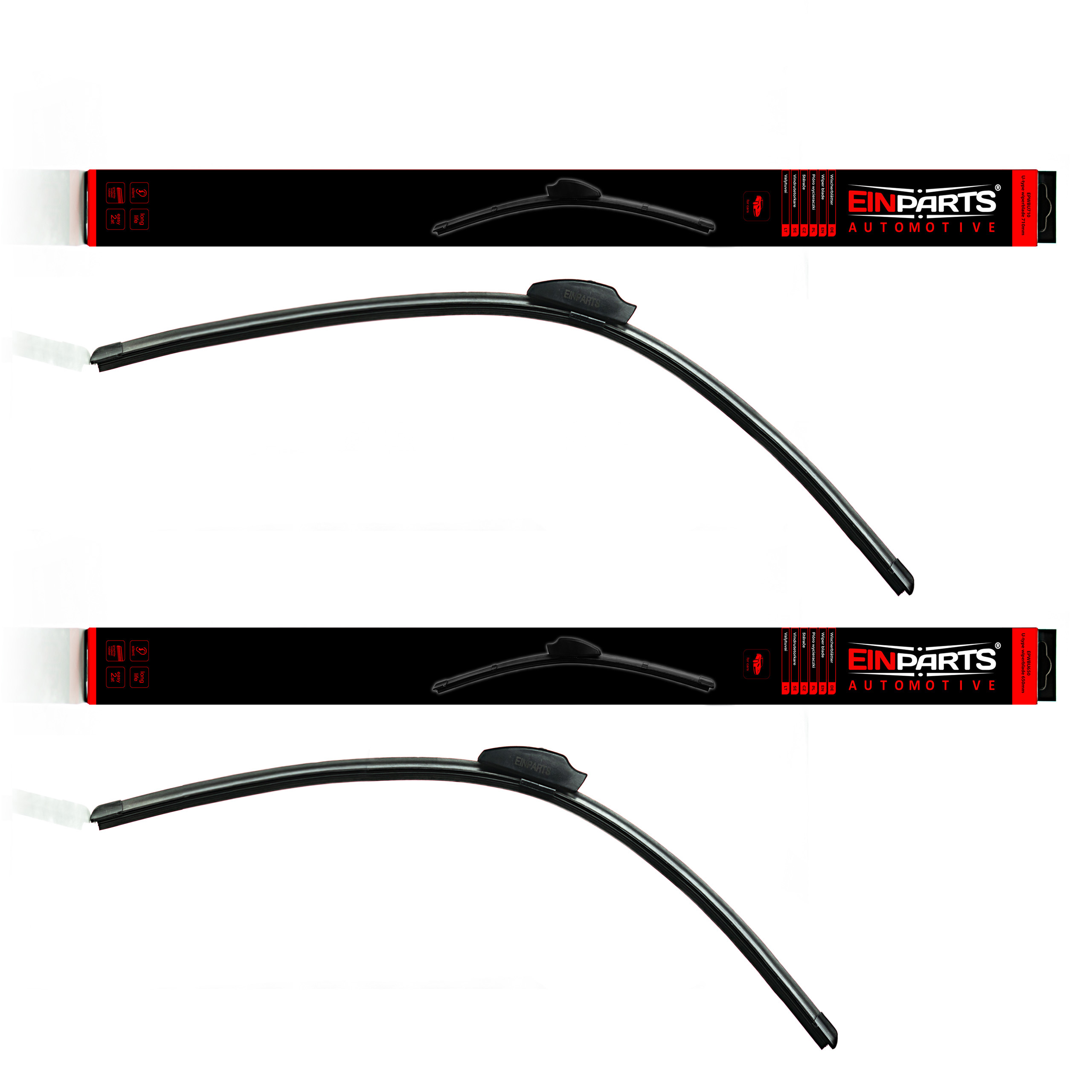 Sada 2 kusů stěračů určených pro auta s klasickým uchycením typu U - hák. Souprava je připravena k okamžité instalaci ihned po vyjmutí z krabice.