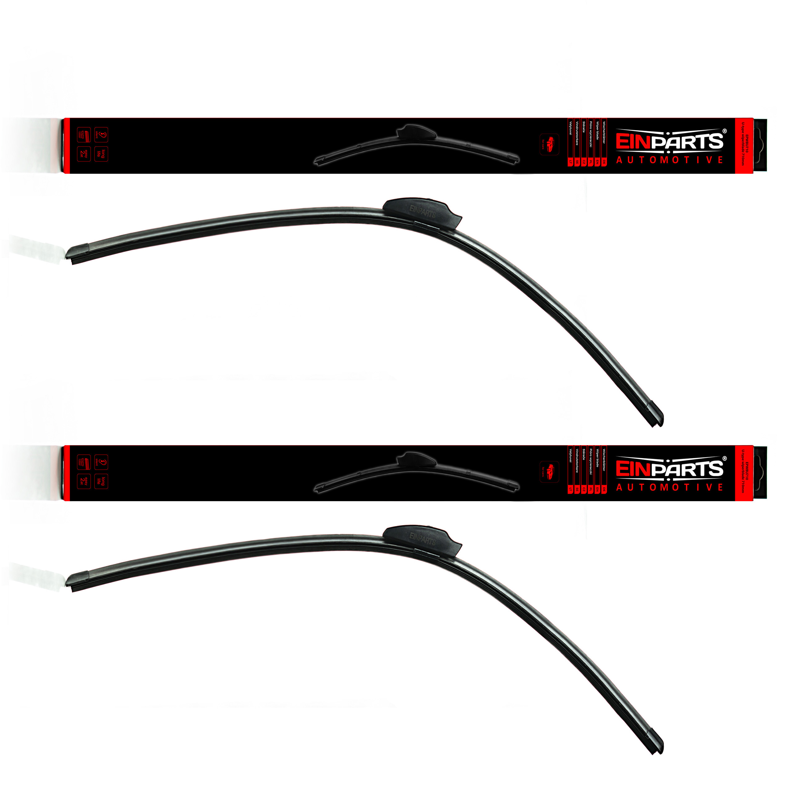 Sada 2 kusů stěračů určených pro auta s klasickým uchycením typu U - hák. Souprava je připravena k okamžité instalaci ihned po vyjmutí z krabice.