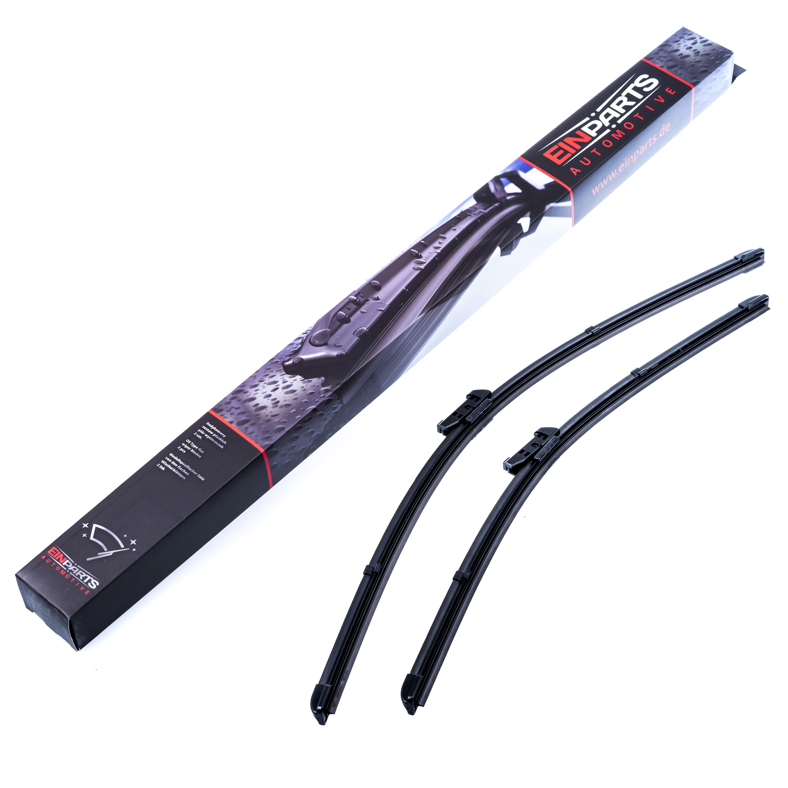 Sada 2 kusů stěračů určených přímo pro konkrétní modely automobilů. Druhy úchytů a délky stírátek jsou totožné s montovanými při sériové výrobě. Souprava je připravena k okamžité instalaci ihned po vyjmutí z krabice.