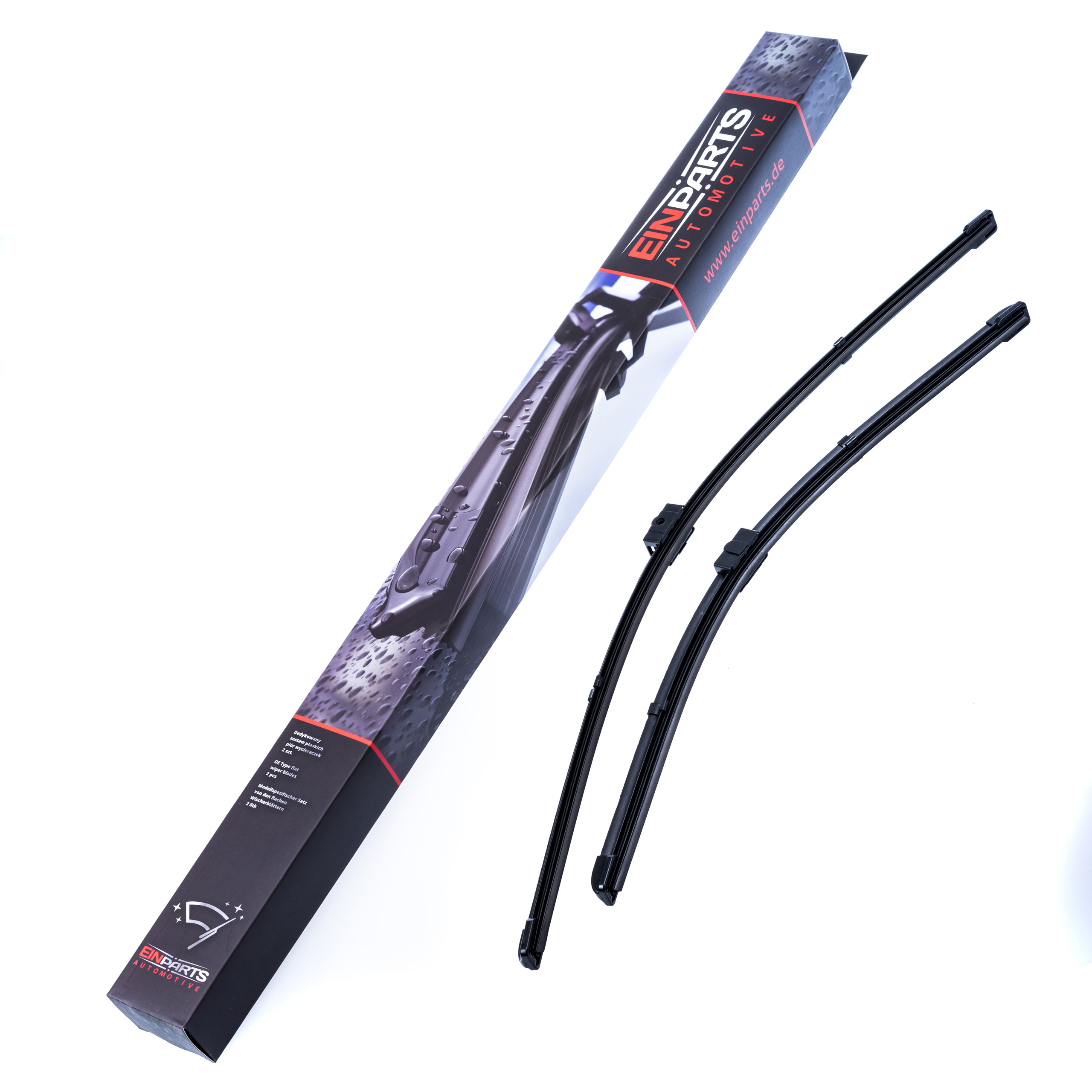 Sada 2 kusů stěračů určených přímo pro konkrétní modely automobilů. Druhy úchytů a délky stírátek jsou totožné s montovanými při sériové výrobě. Souprava je připravena k okamžité instalaci ihned po vyjmutí z krabice.