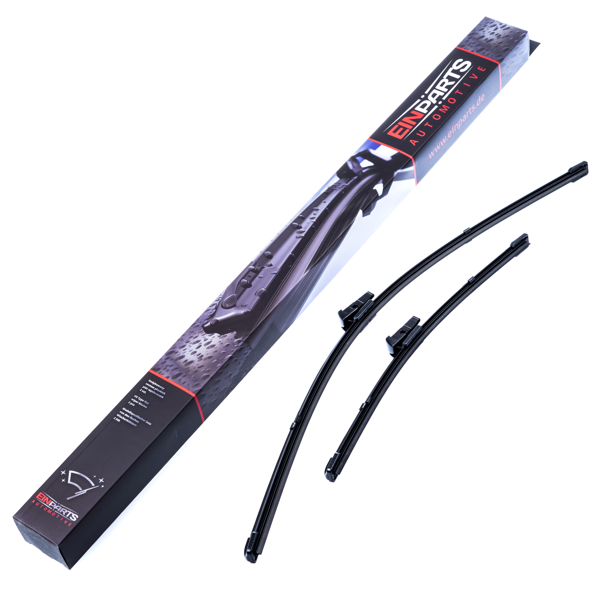 Sada 2 kusů stěračů určených přímo pro konkrétní modely automobilů. Druhy úchytů a délky stírátek jsou totožné s montovanými při sériové výrobě. Souprava je připravena k okamžité instalaci ihned po vyjmutí z krabice.