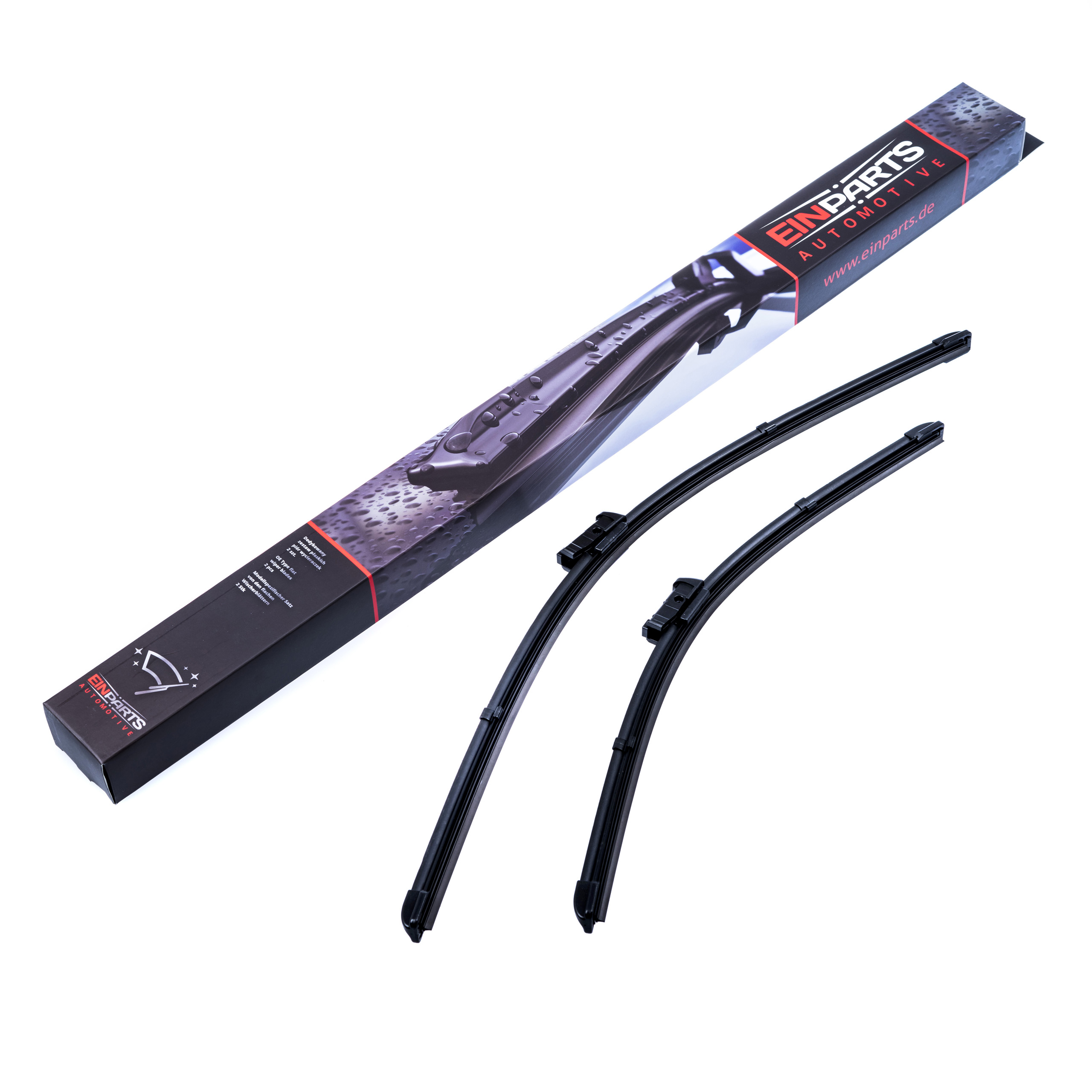 Sada 2 kusů stěračů určených přímo pro konkrétní modely automobilů. Druhy úchytů a délky stírátek jsou totožné s montovanými při sériové výrobě. Souprava je připravena k okamžité instalaci ihned po vyjmutí z krabice.