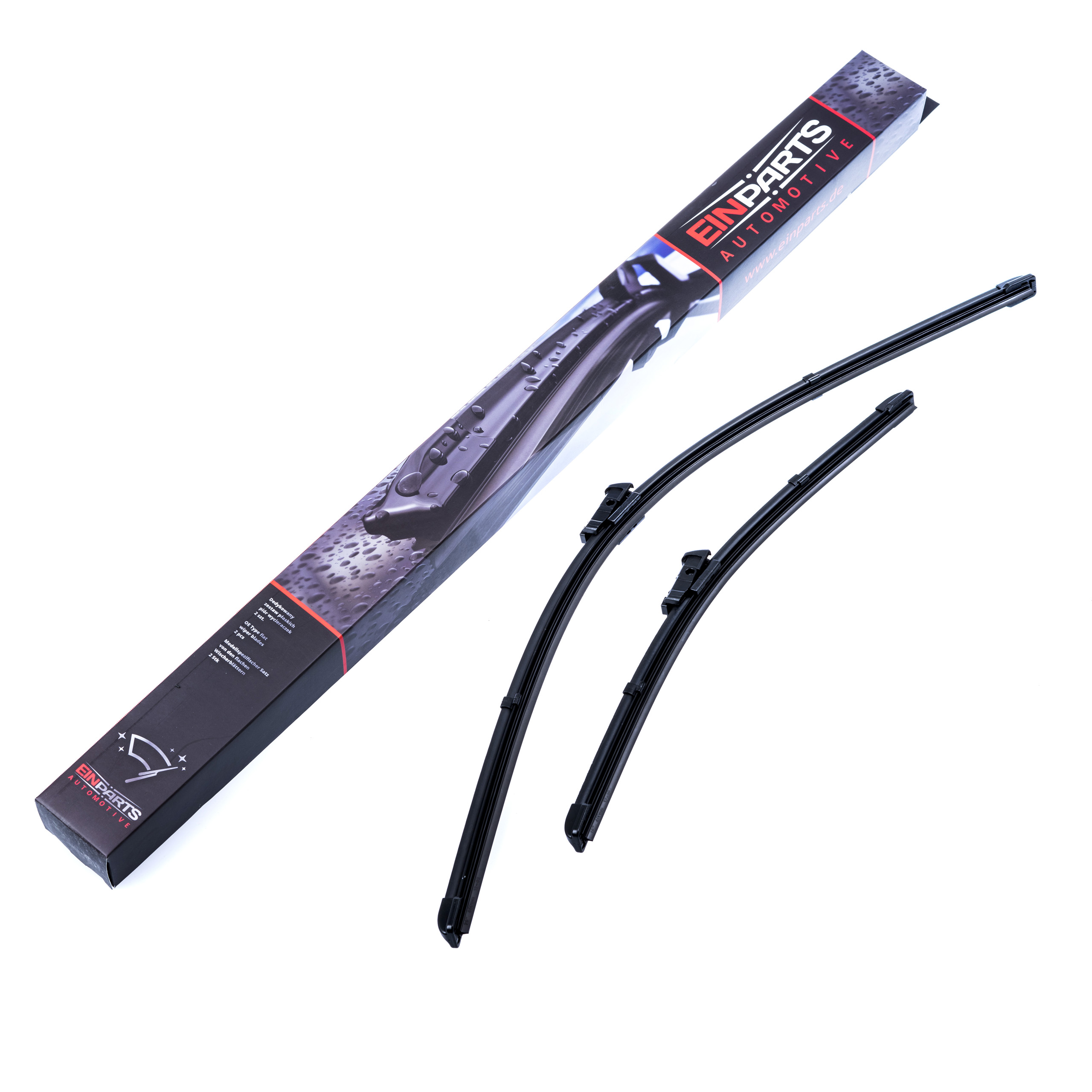 Sada 2 kusů stěračů určených přímo pro konkrétní modely automobilů. Druhy úchytů a délky stírátek jsou totožné s montovanými při sériové výrobě. Souprava je připravena k okamžité instalaci ihned po vyjmutí z krabice.