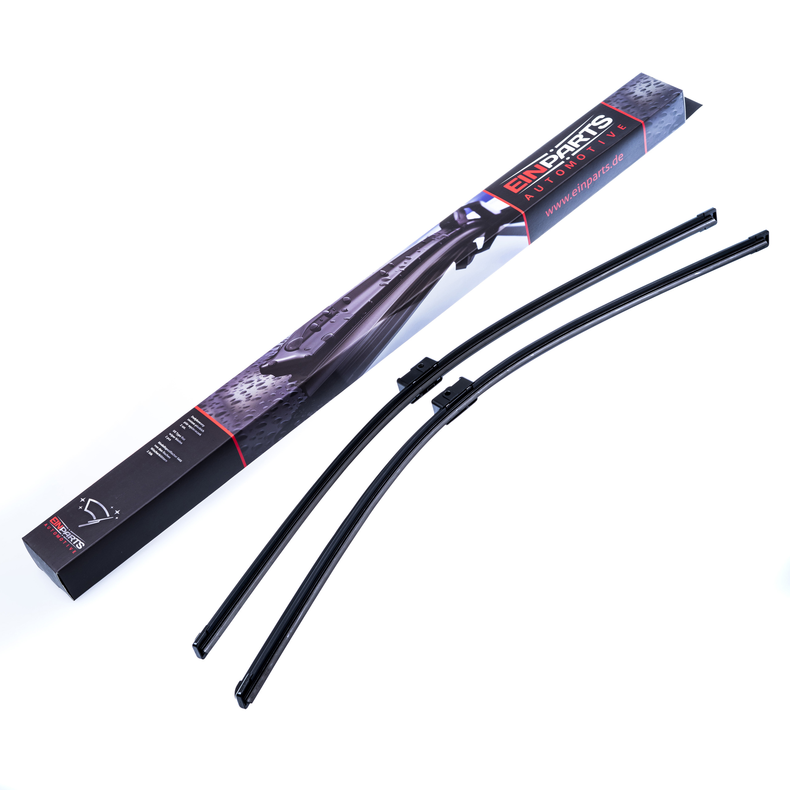 Sada 2 kusů stěračů určených přímo pro konkrétní modely automobilů. Druhy úchytů a délky stírátek jsou totožné s montovanými při sériové výrobě. Souprava je připravena k okamžité instalaci ihned po vyjmutí z krabice.